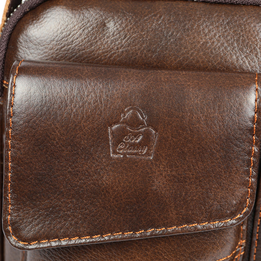 SACLASSY Genuine Leather Messenger Shoulder Crossbody Functional Bag 6199