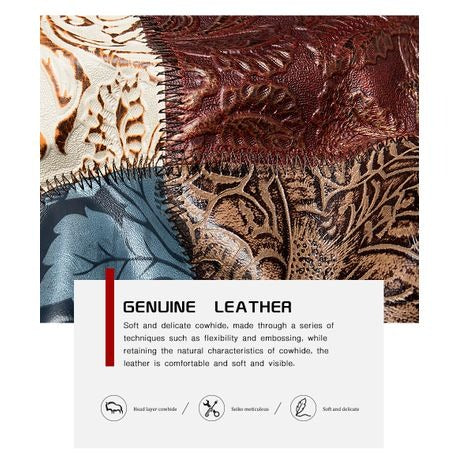Women's Genuine Leather Vintage style Colorful Woven Patch Shoulder Bag 090